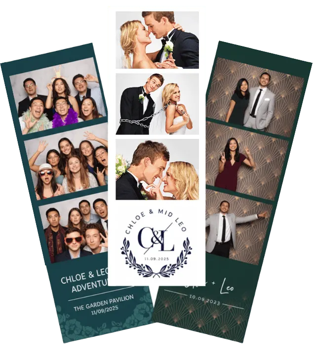 At Premier Photo Booth Rentals, we don’t do generic templates. We design your prints in-house so every guest leaves with a photo strip that looks and feels like your event. From your logo and brand colors to your theme, fonts, and layout, we build a custom design that matches your vision exactly.